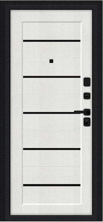 Надежная входная Дверь Браво Борн/SBlack Букле черное/Bianco Melinga премиум класса по цене 31 079 руб. Большая толщина стали защитит от проникновения в ваш дом, квартиру или коттедж. Используется очень качественная фурнитура: замки, цилиндры, ручки, защелки. Покрытие и отделка двери изготовлено под внимательным контролем производителя. Дверь имеет долгий срок службы и гарантию.