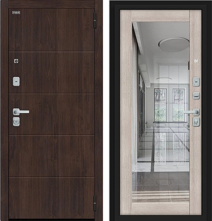 Надежная входная Дверь Браво Флэт/BChrome Almon/Cappuccino Melinga премиум класса по цене 41 979 руб. Большая толщина стали защитит от проникновения в ваш дом, квартиру или коттедж. Используется очень качественная фурнитура: замки, цилиндры, ручки, защелки. Покрытие и отделка двери изготовлено под внимательным контролем производителя. Дверь имеет долгий срок службы и гарантию.