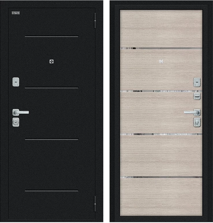 Надежная входная Дверь Браво Лайн/BChrome Букле черное/Cappuccino Melinga премиум класса по цене 31 279 руб. Большая толщина стали защитит от проникновения в ваш дом, квартиру или коттедж. Используется очень качественная фурнитура: замки, цилиндры, ручки, защелки. Покрытие и отделка двери изготовлено под внимательным контролем производителя. Дверь имеет долгий срок службы и гарантию.