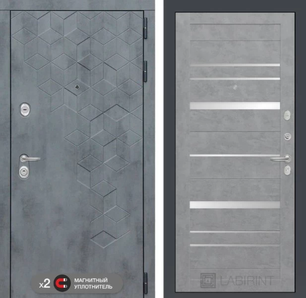 Дизайнерская входная Дверь Бетон класса Люкс с несколькими листами стали, звукоизоляцией и теплоизоляцией. Утепленный короб и полотно защитят от сквозняков и шумов. Модель не только надежная, комфортная, защищенная и высочайшего качества, но и очень красивая! Будет отлично сочетаться с интерьером дома, квартиры или офиса. Сейчас действует выгодное предложение по цене: 53 679 руб.