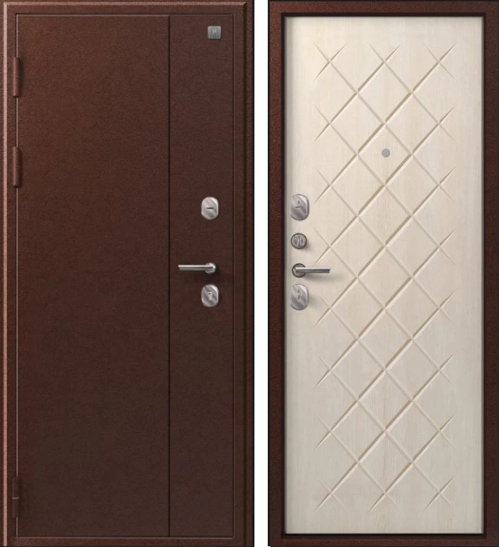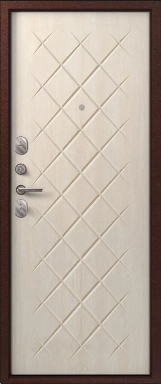 Надежная входная Дверь V-02 медь антик - седой дуб премиум класса по цене 36 429 руб. Большая толщина стали защитит от проникновения в ваш дом, квартиру или коттедж. Используется очень качественная фурнитура: замки, цилиндры, ручки, защелки. Покрытие и отделка двери изготовлено под внимательным контролем производителя. Дверь имеет долгий срок службы и гарантию.