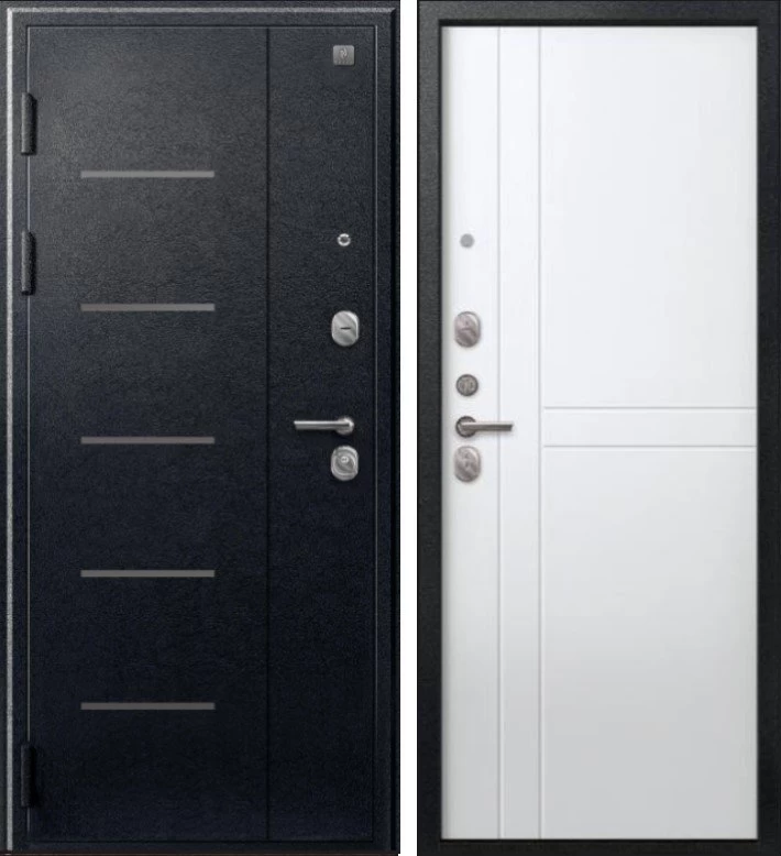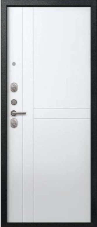 Надежная входная Дверь V-06 Черный муар - Белый премиум класса по цене 38 429 руб. Большая толщина стали защитит от проникновения в ваш дом, квартиру или коттедж. Используется очень качественная фурнитура: замки, цилиндры, ручки, защелки. Покрытие и отделка двери изготовлено под внимательным контролем производителя. Дверь имеет долгий срок службы и гарантию.